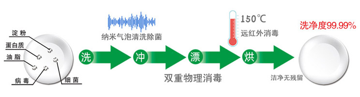 傳統(tǒng)技術(shù)和創(chuàng)新科技的有機結(jié)合,高品質(zhì)的洗滌效果,滿足任何形狀、任何材質(zhì)餐具的高標(biāo)準(zhǔn)洗滌要求,新一代納米清洗、沖洗、干燥一體式小型自動洗碗機。