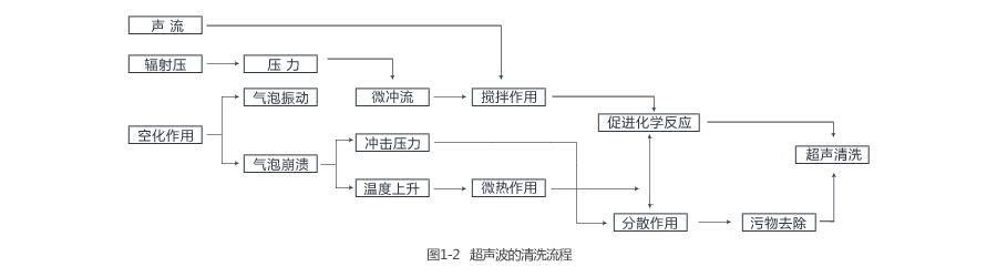 超聲產(chǎn)生的物理效應(yīng)在清洗過程中的作用如下所示。
