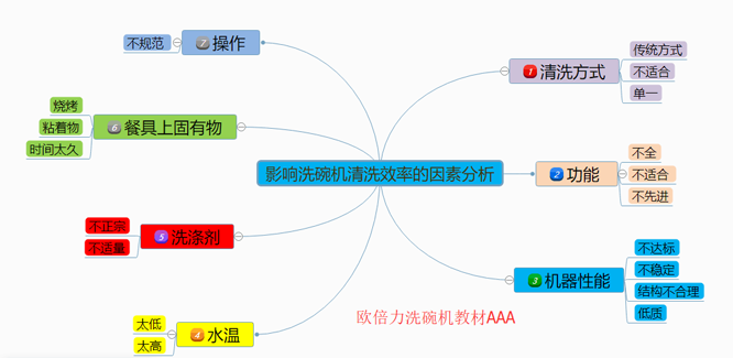 那么影響洗碗機清洗效率有哪些因素呢,作為餐具清洗消毒行業(yè)管理者將其歸納總結,并制作成下述圖表: